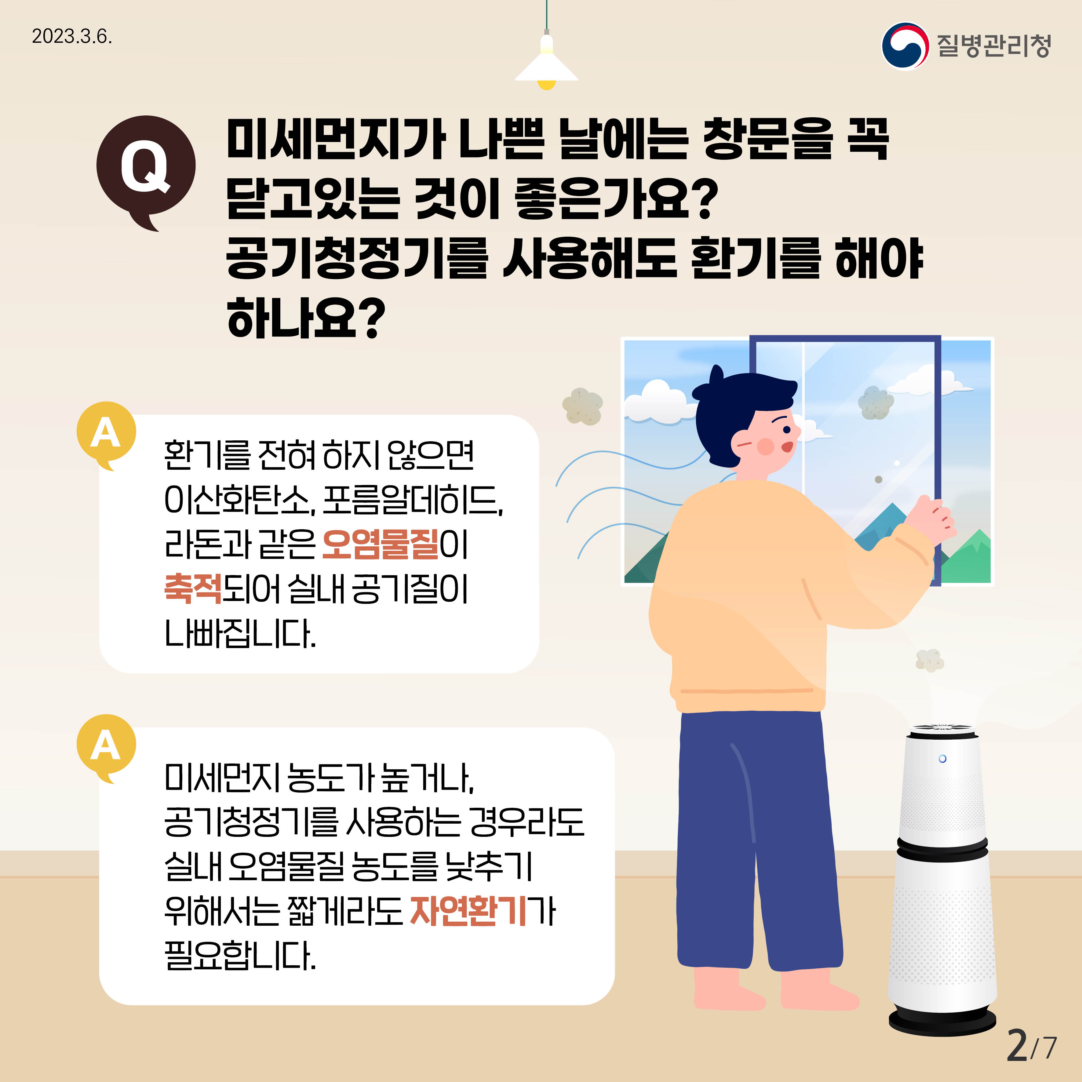 1. 미세먼지가 나쁜 날에는 창문을 꼭 닫고 있는 것이 좋은가요? 공기청정기를 사용해도 환기를 해야 하나요?