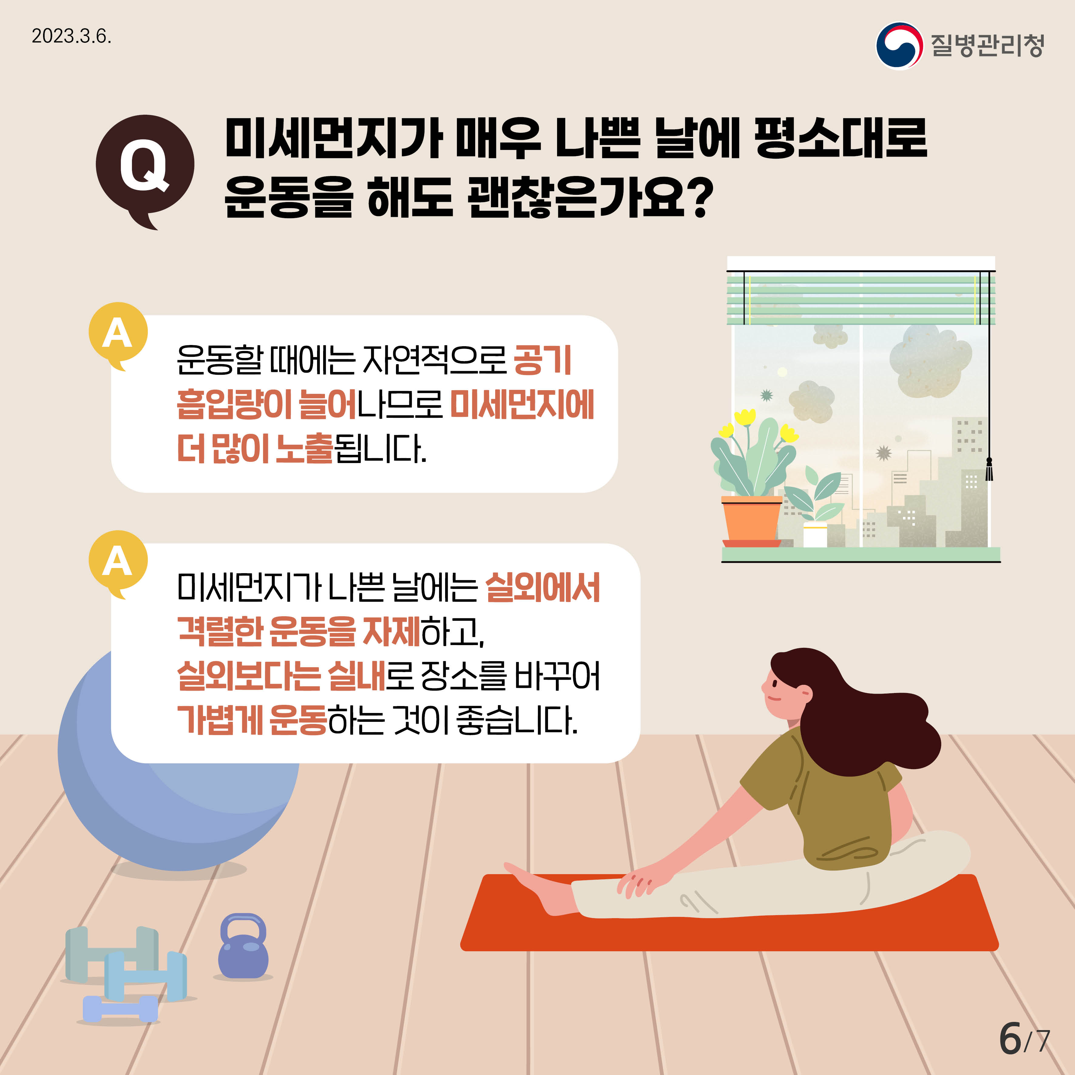 5. 미세먼지가 매우 나쁜 날에 평소대로 운동을 해도 괜찮은가요?