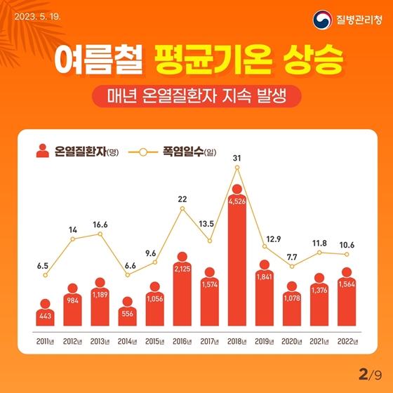 또한 여름철 평균기온의 상승으로 매년 온열질환자는 지속적으로 발생하고 있습니다.